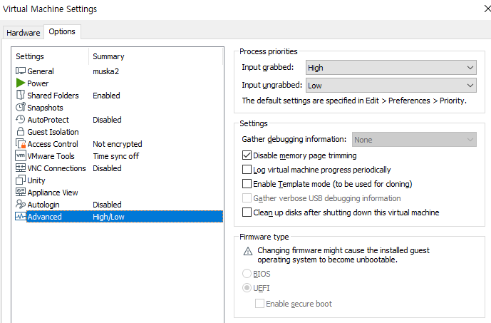 disable memory page trimming - 체크