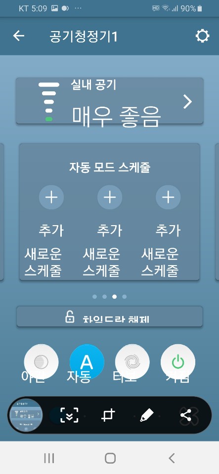아래사진 처럼 따로 리모컨이 없기 때문에 핸드폰 앱에서 실행하여 모든 컨트롤러와 실내 공기를