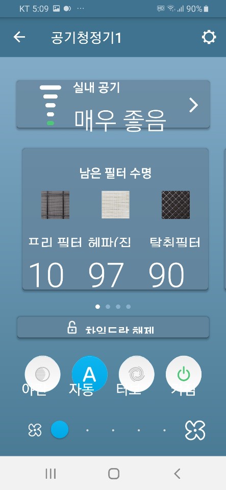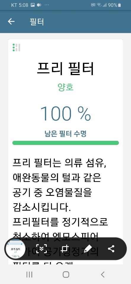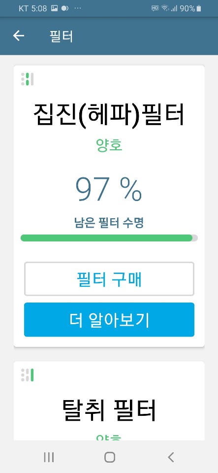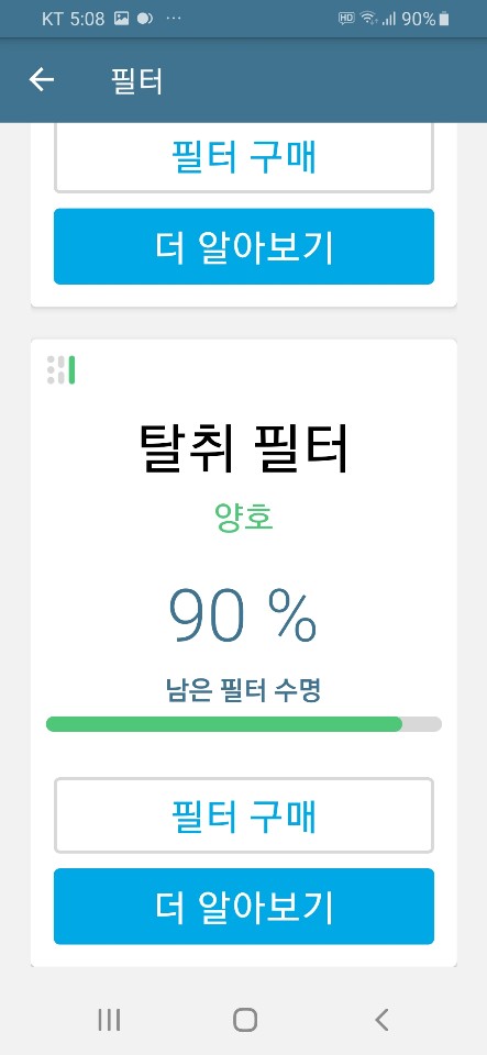 3가지의 필터의 남은 수명도 알아서 체크해줘서 편리합니다