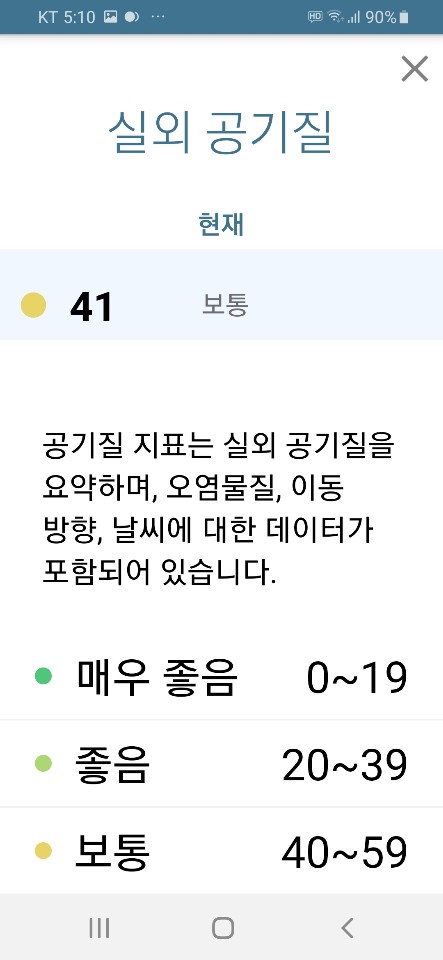 실외의 공기질도 요약해서 간단히 표시해줍니다