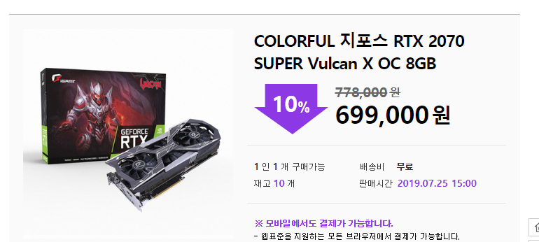 [다나와] COLORFUL iGAME 지포스 RTX 2070 SUPER Vulcan X OC D6 8GB