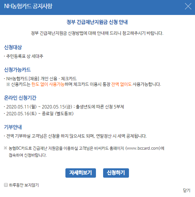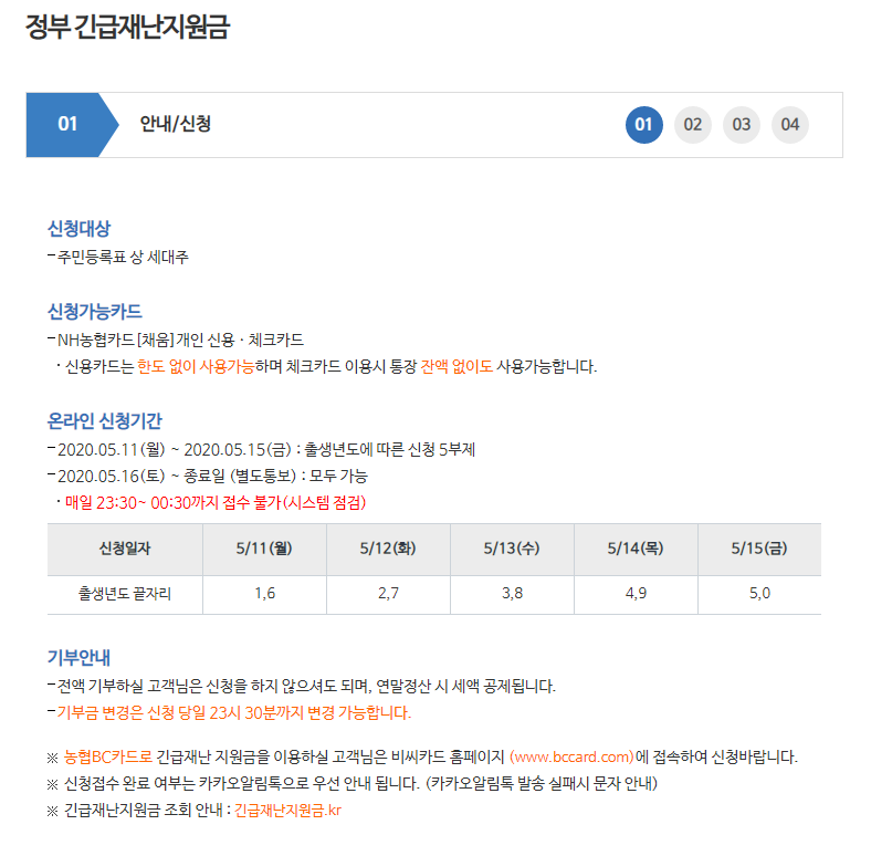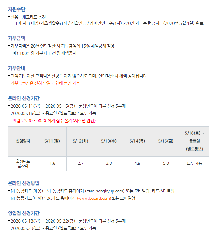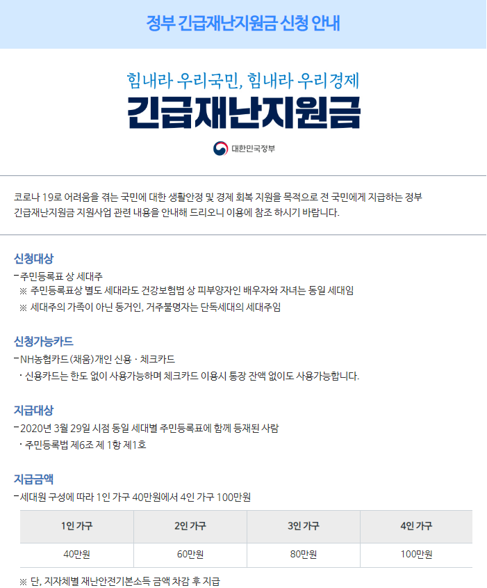 정부 긴급재난 지원금 신용카드, 체크카드, 지역사랑 상품권, 선불카드 신청안내