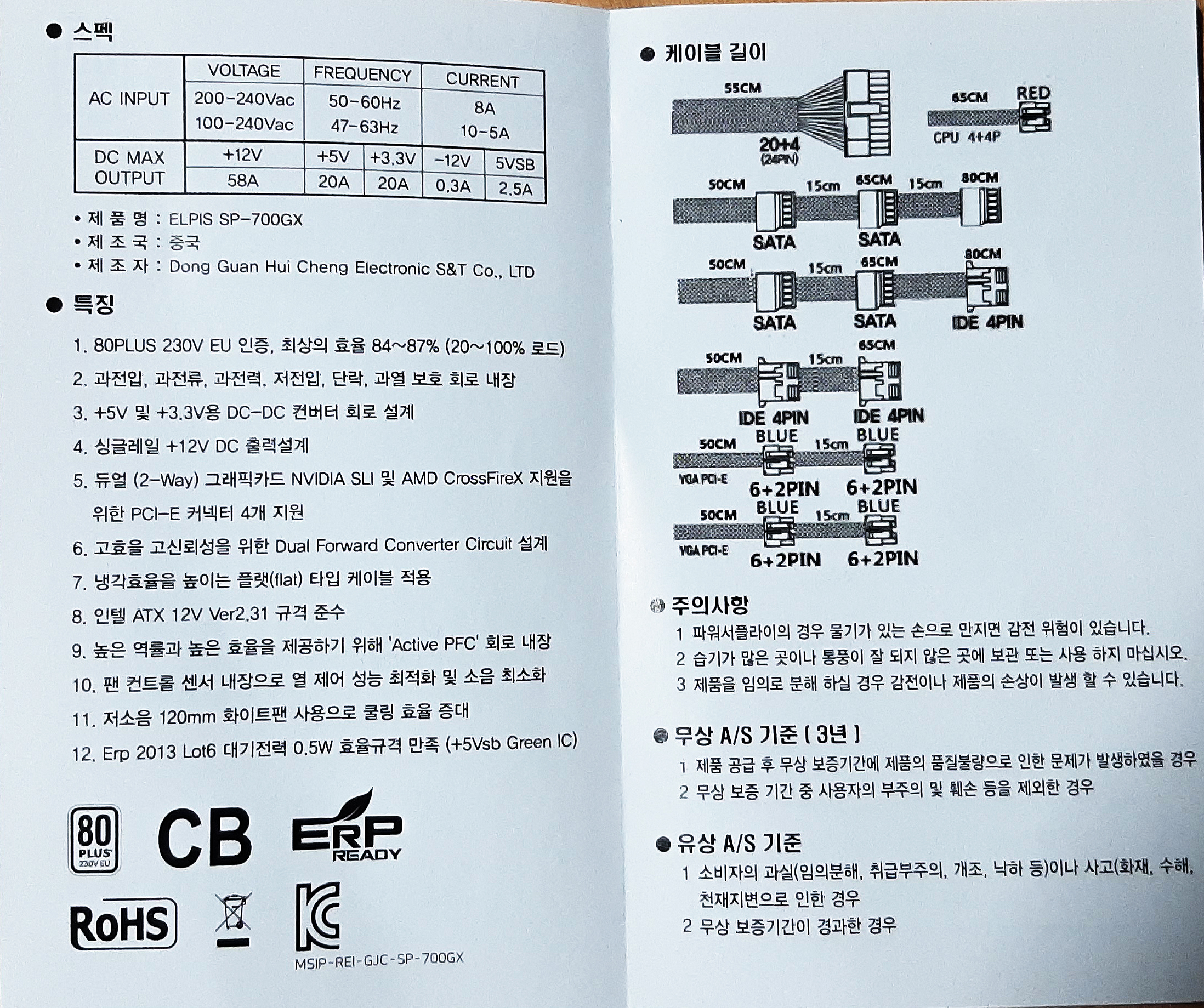 아이구주 ELPIS SP-700GX 80PLUS Standard 230V EU 간단 스펙