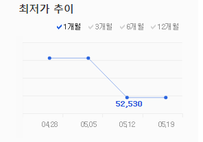 가격은 다나와 최저가 추이로 보아 기존 55,000원 정도 선에서 52,000원대 까지 내려온 것으로 예상되네요
