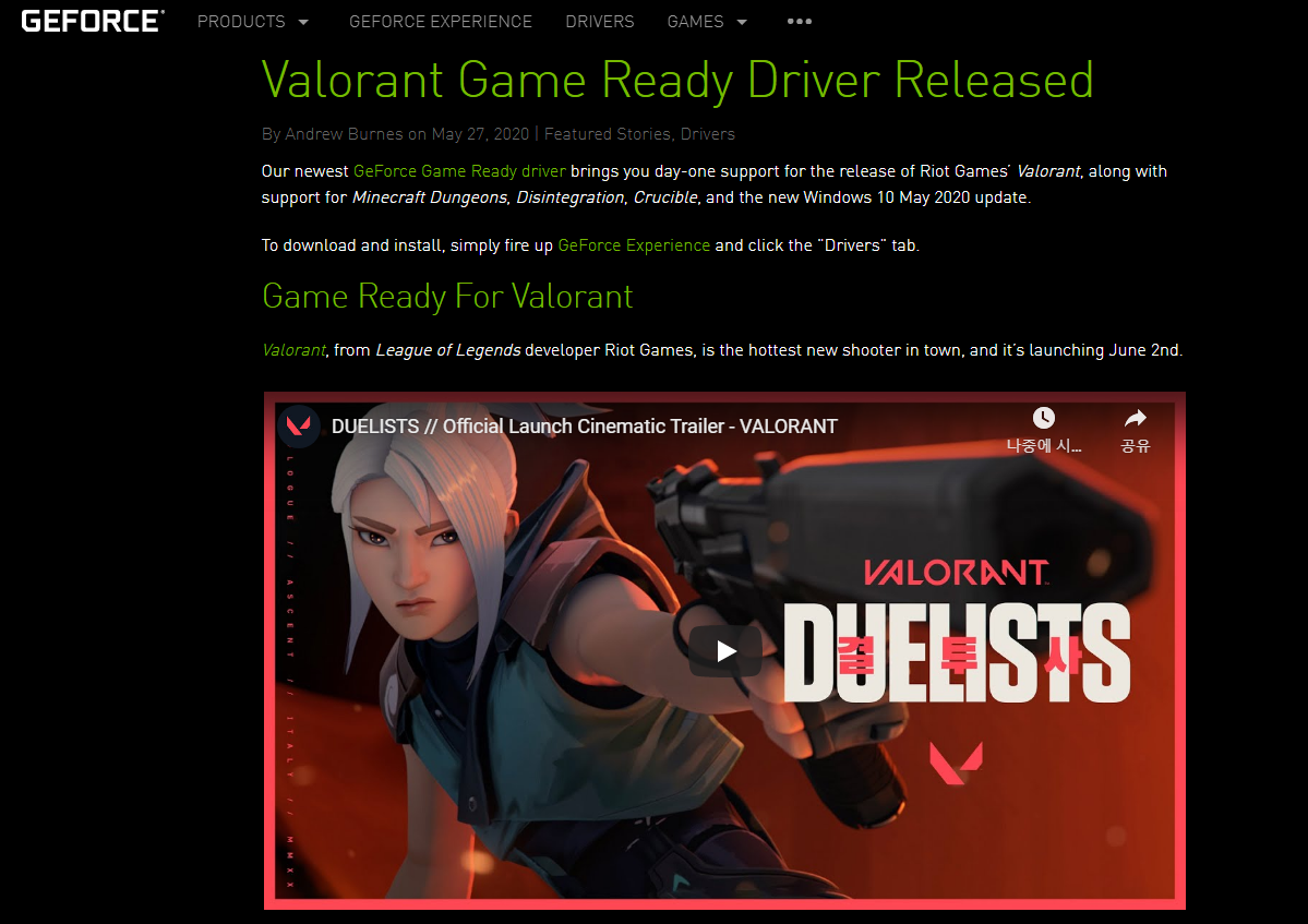 이전 446.14 버전의 발로란트 공식지원에 앞서 새롭게 나온 버전 Nvidia Drivers 451.48