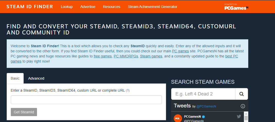 Enter a SteamID, SteamID3, SteamID64, custom URL or complete URL (?)