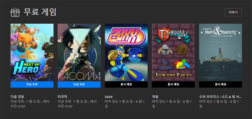 에픽 무료 배포 게임 2020-7-24 tacoma - netx up hero