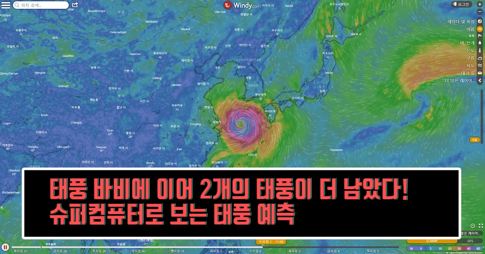 태풍 바비에 이어 2개의 태풍이 더 남았다! windy 의 슈퍼컴의 자료를 참고해 보는 태풍 예측 경로