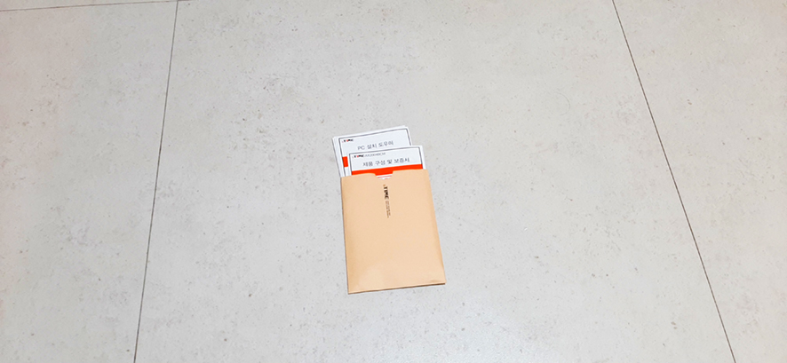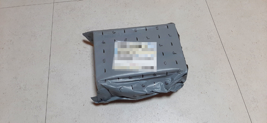 택배 박스가 도착하였습니다 귀여운 폰트가 적힌 포장지네요