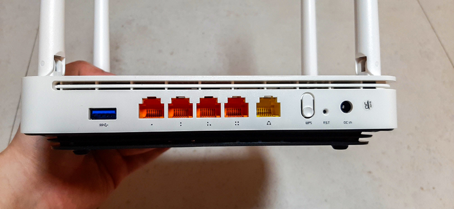 USB 3.0 포트 1 개, LAN 포트 4 개, 메인 포트 1 개, WPS 버튼 1 개, 재설정 버튼 1 개, 전원 어댑터 1 개