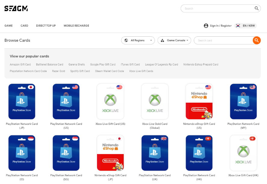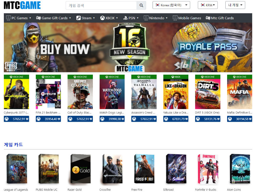 예) 스팀, 엑스박스, 플레이스테이션, 닌텐도 등 여러 플랫폼 카드를 구입할 수 있습니다.