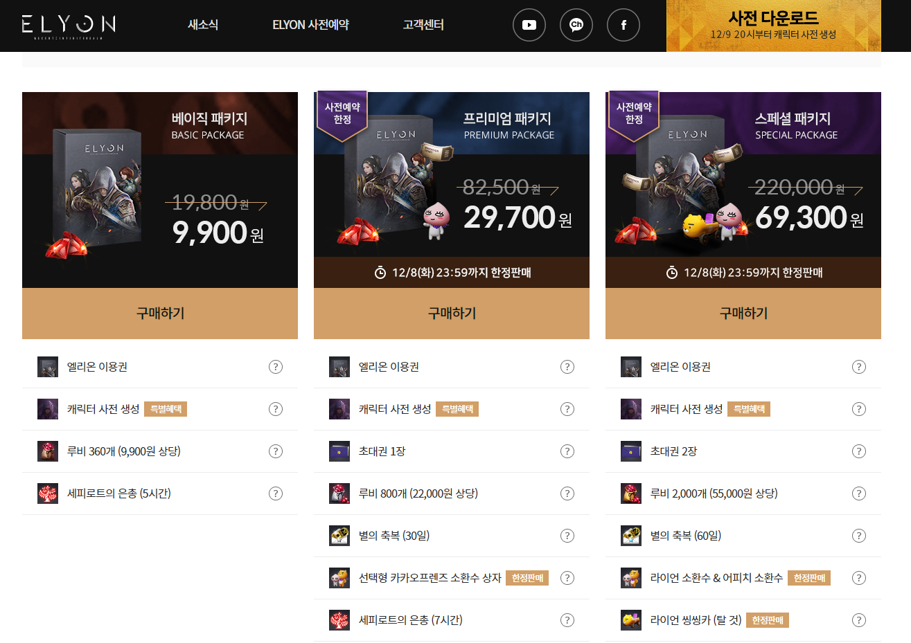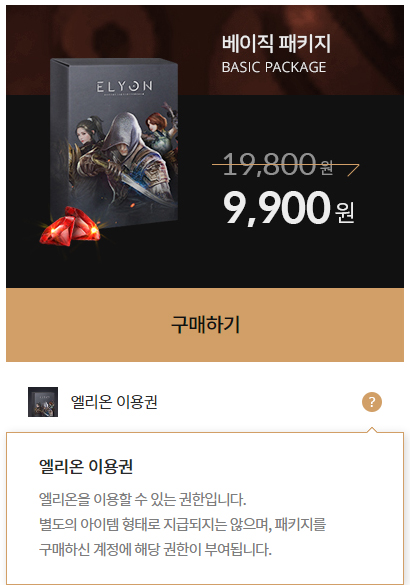 엘리온 패키지 금액 정보