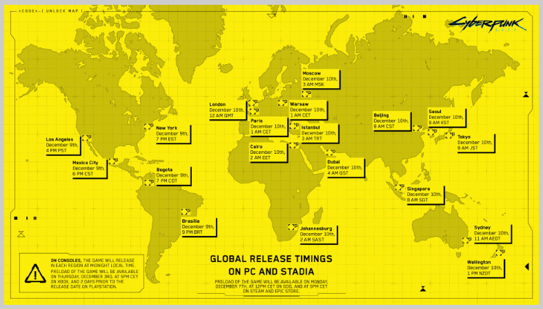 사이버펑크 2077 글로벌 발매 시간 자료 출쳐: