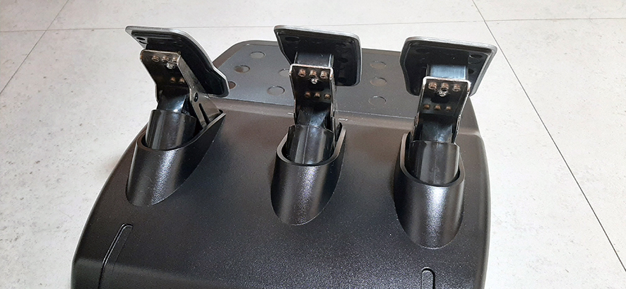 로지텍 G29 페달의 경우 페달은 총 3개로 클러치, 브레이크, 악셀 이렇게 3개의 버튼이 있는데 밟는 감도는 각각 다릅니다 약간 거친느낌이라고 해야할지.. 뭐라고 해야할지 모르겠네요