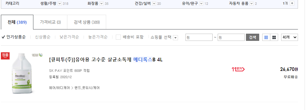 초반 시기에 사재기가 소독제를 구입하시는 분들이 많이 늘어나면서 개인당 1개씩 구입하기도 하고