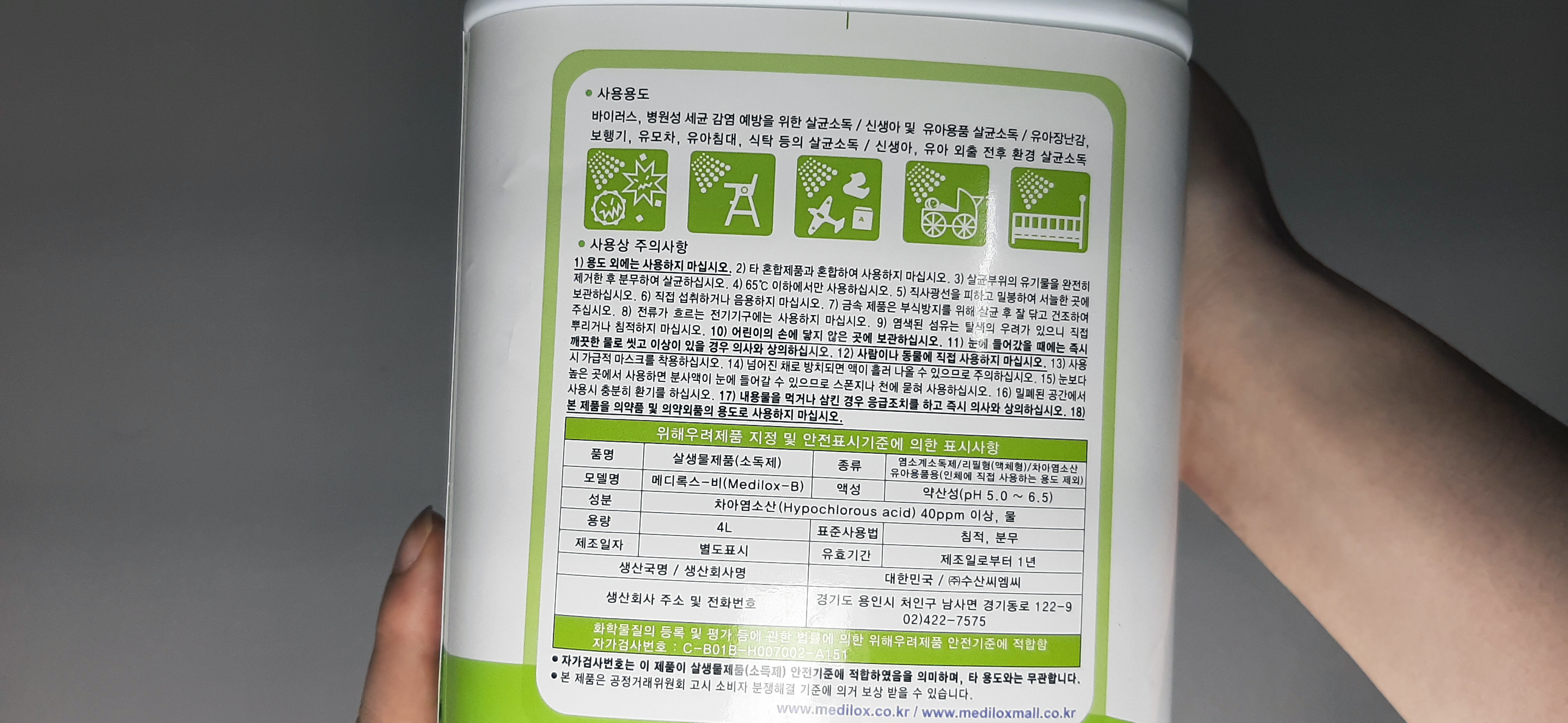 수산씨엠씨 메디록스B 유아용 무독성 살균소독제 4L (1개) : 다나와 가격비교