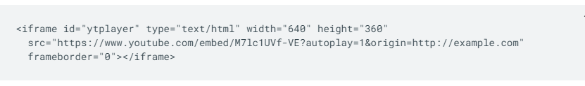 | &autoplay=1 (자동재생 상태) 이 매개 변수는 플레이어가 로드 될 때 첫 번째 동영상을 자동으로 재생할지 여부를 지정합니다. 지원되는 값은 0 또는 1입니다. 기본값은 {0 /}입니다. |