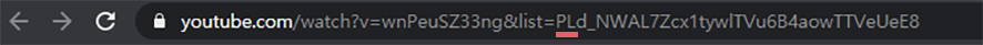 | &playlist=VIDEO_ID (플레이리스트) 플레이 리스트가 있는 재생 영상도 마찬가지로 PL 를 붙인 주소로 플레이 리스트를 작성할 수 있습니다 예로 표시된 것 처럼 재생목록 ID 앞에 PL 문자가 붙어 있어야 합니다 ![]() |