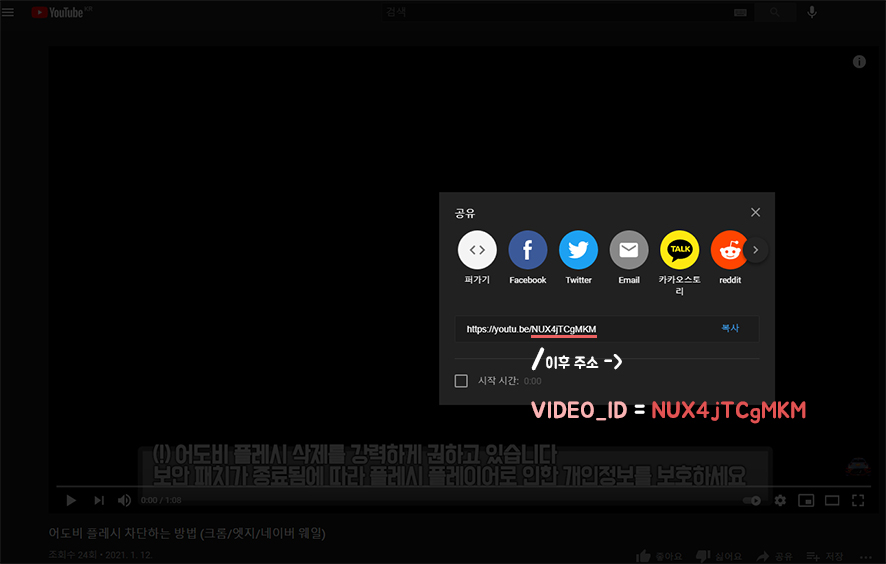동영상 로드 후 자신의 영상 VIDEO_ID 주소를 알 수 있는 방법