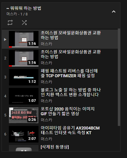 사용자가 업로드한 영상 로드로는 list 동영상 업로드 한 유튜브 사용자 이름으로 설정 합니다