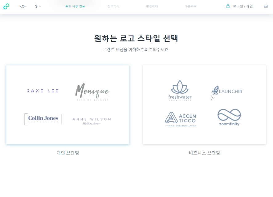생성된 로고들이 많이 나오는데 이 중에 마음에 드는 로고를 선택하시면 됩니다