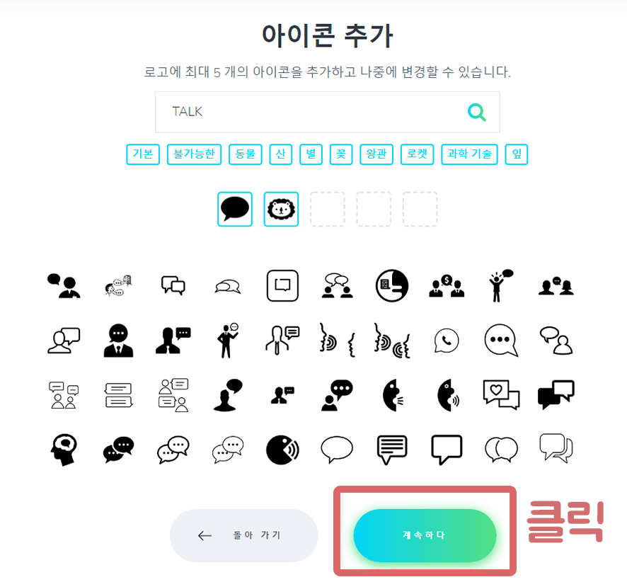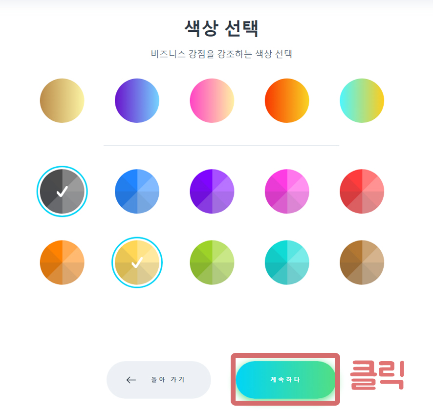 아이콘을 최소 1개부터~ 최대 5개까지 자유롭게 설정 하신 다음 계속하다를 클릭하시면 진행 단계 색상으로 넘어갑니다