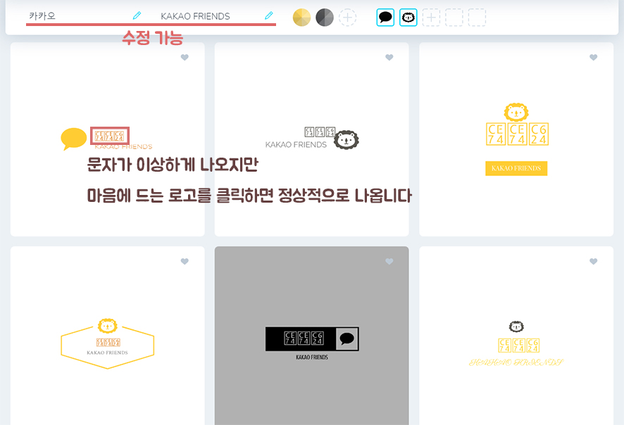 문자가 이상하게 나오지만 마음에 드는 로고를 선택 후 클릭하면 정상적으로 나오게 됩니다