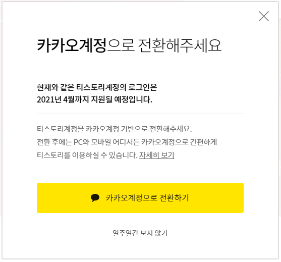 다음 티스토리 카카오 계정으로 전환하는 방법