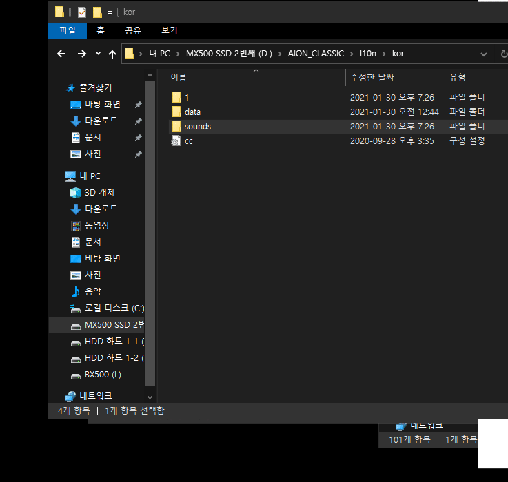 아이온 설치폴더:\AION_CLASSIC\l10n\kor\sounds