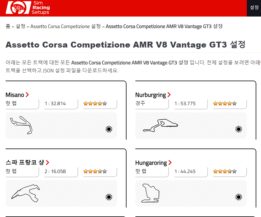 3) 다운로드하여 문서 / acc / setups / car / track에 설정 복사