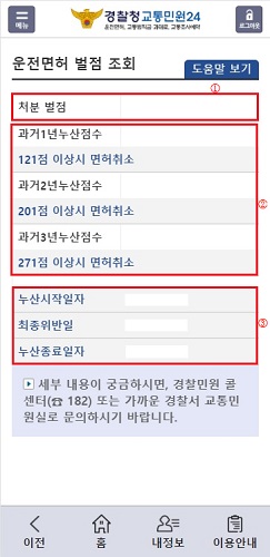 누산점수, 1년, 2년, 3년 의 합친 점수에도 통합하여 면허가 취소가 될 수 있습니다