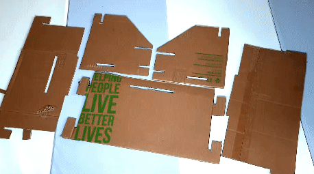포장 박스에 인쇄된 QR 코드를 통해 박스를 이용한 소형가구, 반려동물의 물품 등 다양한 형태의 물건을 제작할 수 있는 매뉴얼이 제공됩니다.