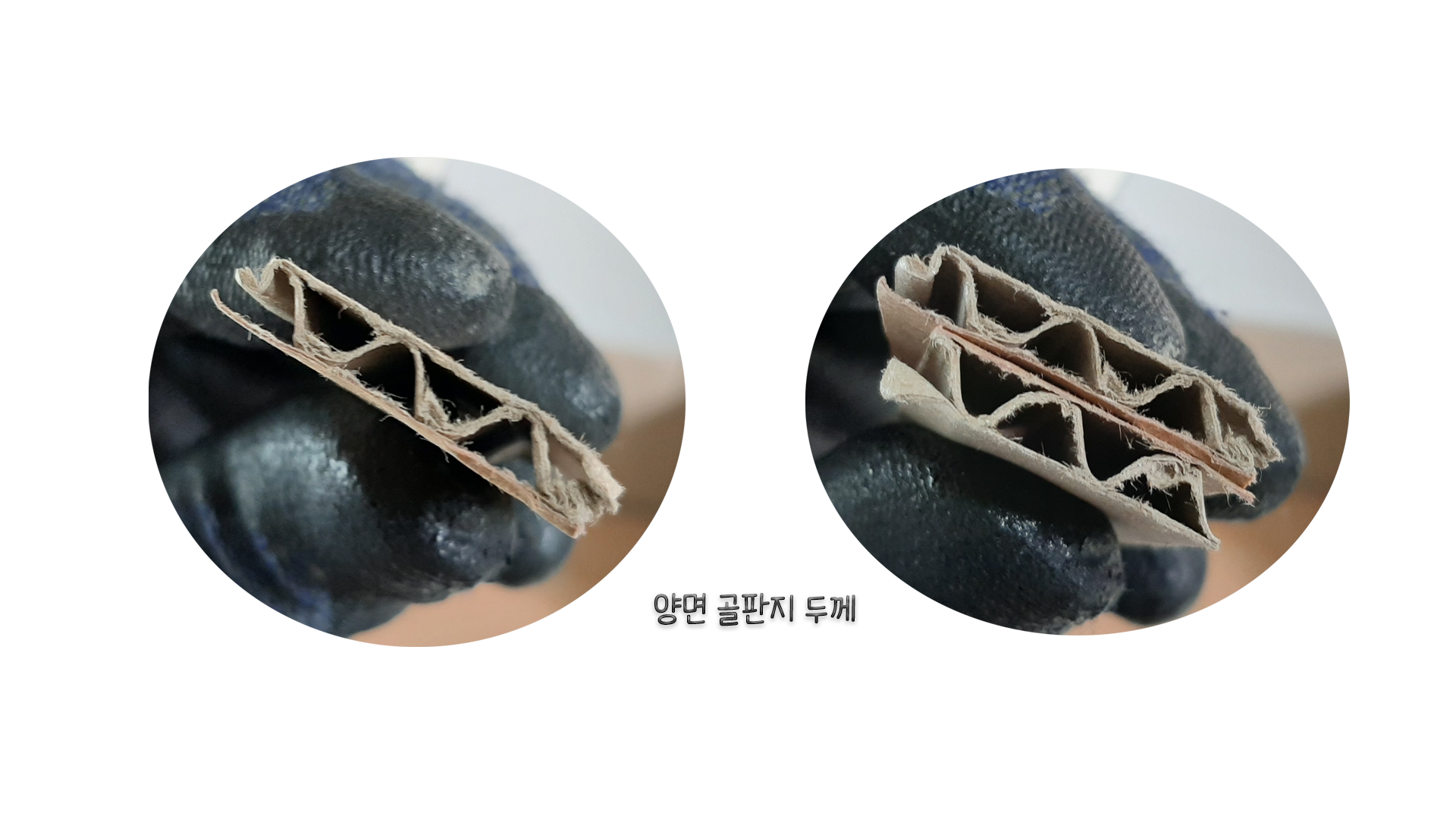 ▲ 상단에 보시면 제가 이전에 만들었던 일반 양면 골판지 택배 박스를 이용하여 만든 것 보다 쉽게 잘리고 단면에 보다 깔끔하게 잘렸습니다.