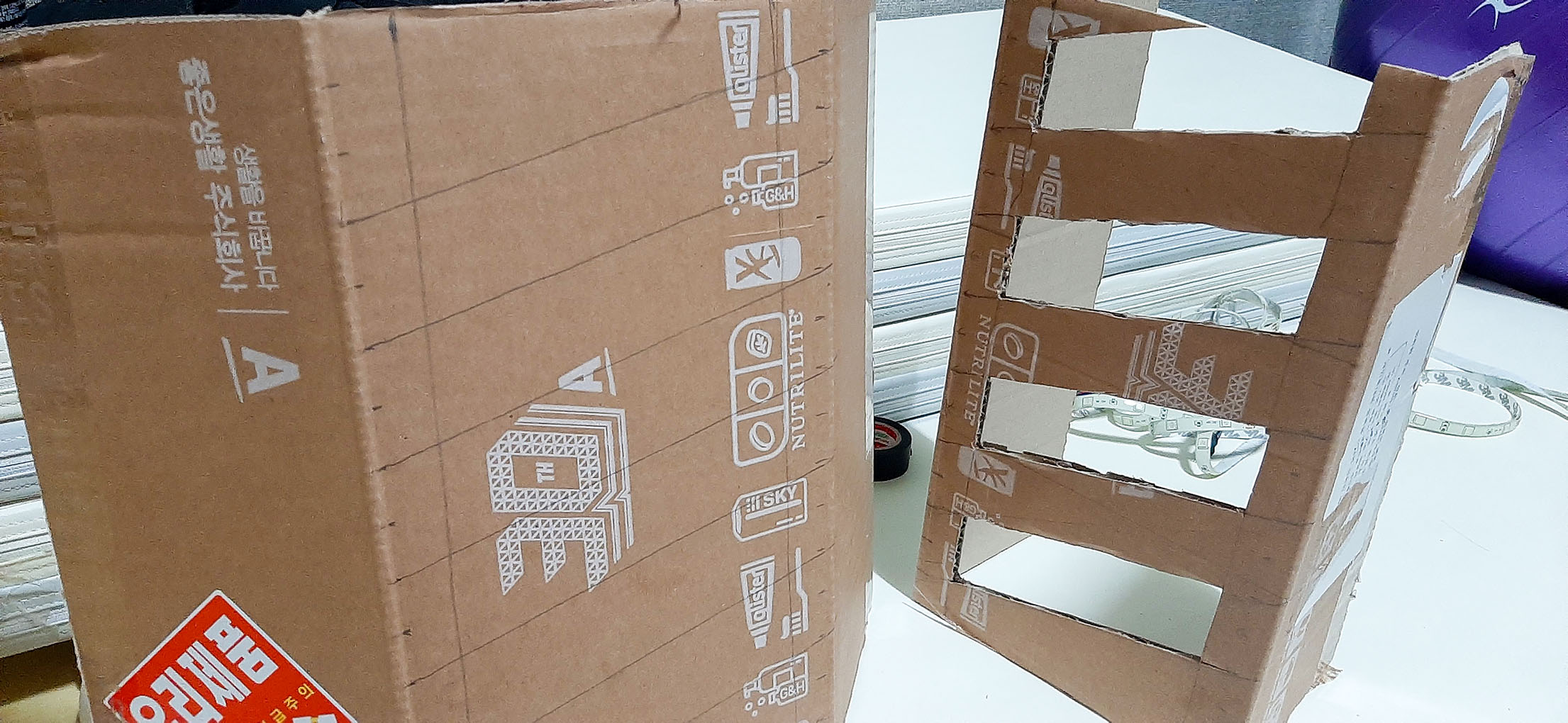 led 박스 외에도 골판지를 이용한 자판기도 만드는 시도 중에 있지만 만들기가 쉽지가 않아 아직 수정중에 있습니다.