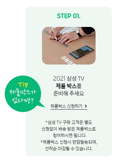 박스는 랜덤이지만 삼성의 가전제품을 구입하지 않아도 제품 박스를 제공받을 수 있으니 한번 만들어보는 기회를 가져보세요~