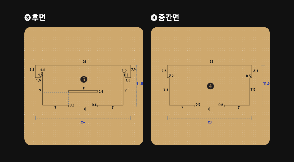 작은 사이즈의 도면을 원한다면 숫자만 반으로 바꾼 사이즈 수정한 아래의 도면을 보시면 되겠습니다.