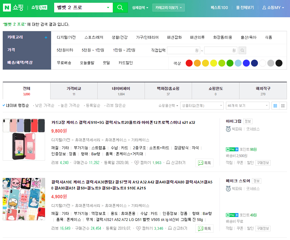 아래 사진과 같이 네이버 쇼핑에서도 등록이 안 되어 있는데
