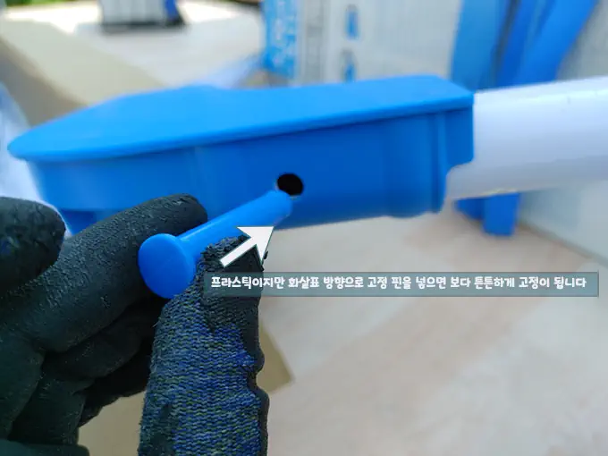 고정 핀: 4 부분의 모서리 쪽 커넥터로 더욱 견고하게 버틸 수 있도록 만들어주는 고정 핀입니다.