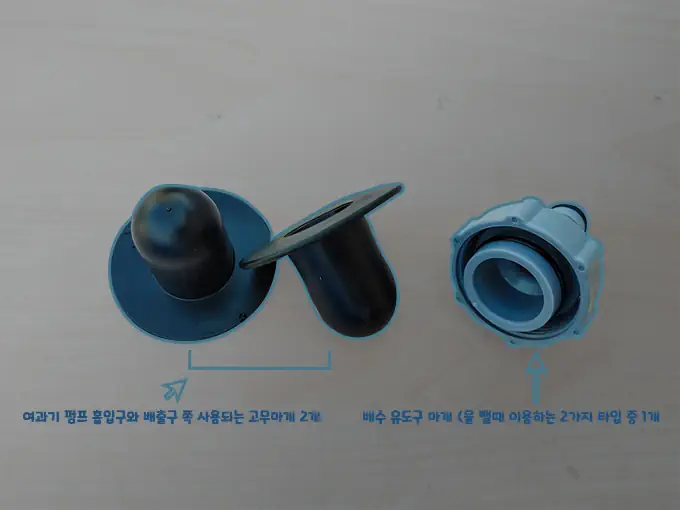 고무마개: 수영장의 물을 가둬 둘 수 있게 할 수 있는 마개입니다.