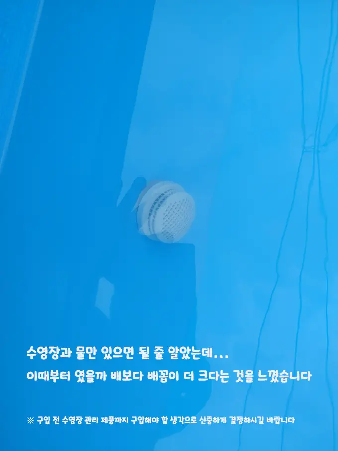 끝에 준비하게 되었습니다만 오히려 더 스트레스가 쌓이는 문제점에 해결해 나가는 재미도 있을 수 있었지만 믿고 있었던 아마존 조차도 물량이 없어는 것들도 많아서 수질 관리 제품도 구입하는데 제한이 걸리고 지출 또한 배보다 배꼽이 큰 관계로 올해 올여름 길게 남았다면 길게 남았고 짧게 남았다면 짧은 여름에 사용 시에만 적당량의 물을 받아 새롭게 사용하고 버리는 것으로 해결을 보기로 했습니다.