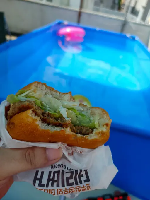 수영장 처음 개시한 1일째 물에서 여유를 즐기고 난 후 여유로운 배고픔을 달래 줄 햄벅한 시간을 가질 수도 있습니다.