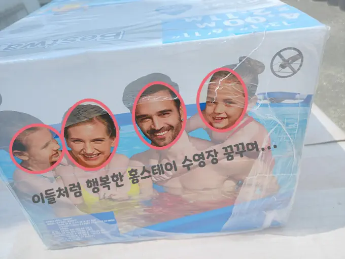어느 순간 배달이 되어 있는 간이 수영장이 도착하여 바로 개봉하였습니다.