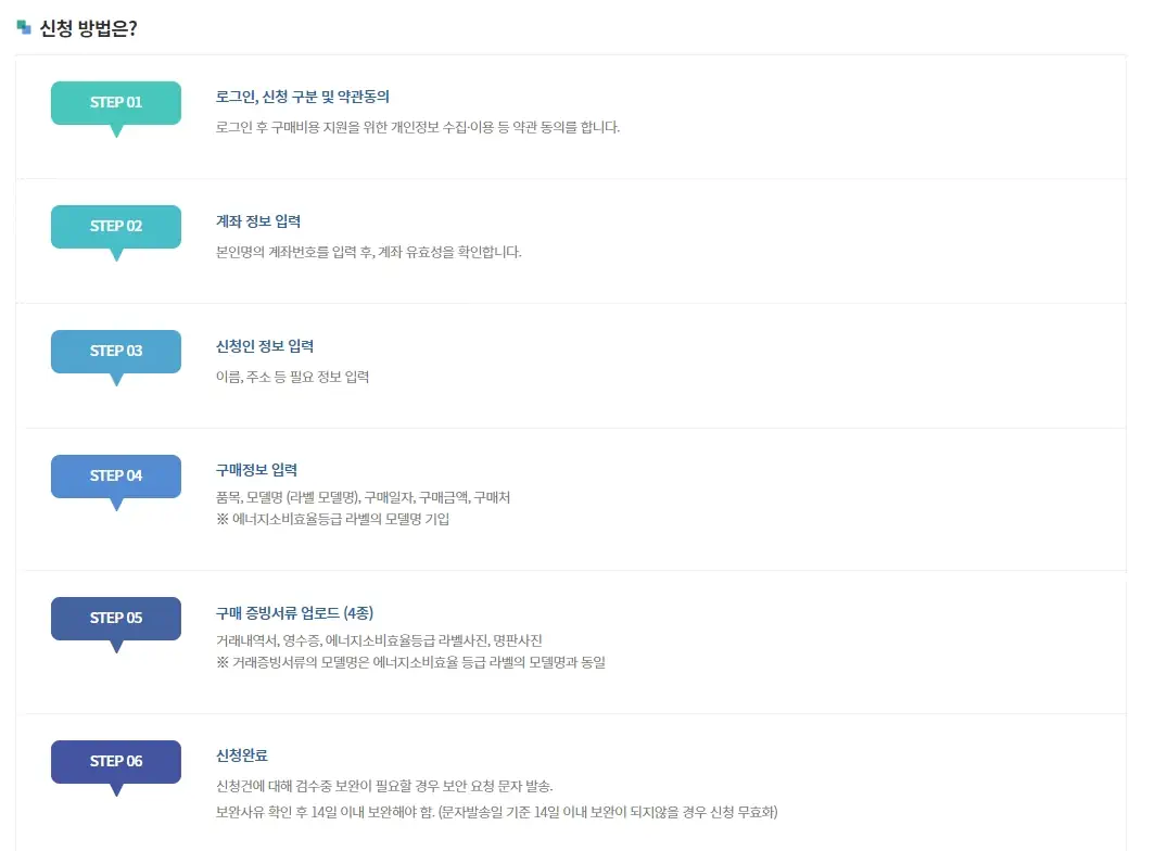 (보내야 할 서류는 4종: 거래내역서, 영수증, 에너지소비효율등급 라벨사진, 명판사진)