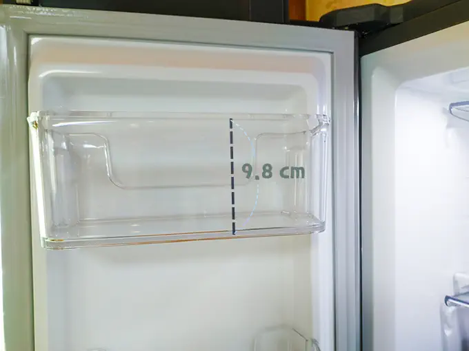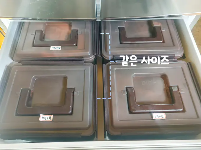 상단 도어 용기와 하단 첫번째 저장고 용기 사이즈 동일