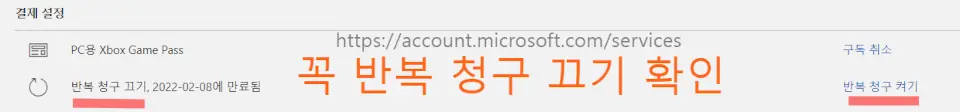 아래의 서비스 구독 창에서 반복 청구 끄기를 ※ 꼭 확인하시길 바랍니다.)